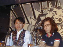 その後、松尾さん、杉さん持参のビデオ鑑賞。まず松尾さんはソロのプロモーションビデオのダイジェスト。会場からは思わず拍手。「かわいぃー!」「きゃー!」という黄色い歓声。「Tea for you」の一人芝居には大盛り上がりっ。「相手役が来なかったんですよー」っておっしゃってましたけど(^^)「こっちの方がダイジェストじゃなくて全部入ってるんですよねー。何年も借りっぱなしでうちにあったんだけど…」って杉さんったらぁ。監督さんが「TERRA」と同じ岩下さんっていう方なんだそうです。 杉さんのビデオは「HOLIDAY COMPANY」を。こちらも杉さんが出てくると「かわいぃーっ!」って黄色い声(笑)しかしこの豪華なメンバー(南佳孝さん、プリプリ、薫ちゃん、Hi-Fi SET、種とも子さん)がよく揃ってビデオ撮影できたなぁと今更ながら感心してしまいますわ。薫ちゃんが登場した時も一段と大きな歓声が。みんなホントにかわいいっ。何度も見てるビデオだけどみんなで見ると盛り上がりも格別。ん〜っ堪能っ。 「この後、BOXのビデオがあるんだけど時間の都合で音消して映像だけ…」って角野さんが言うと会場からブーイング。「えっ、やだ?じゃ、見ようか…」わがままなお客ですみませーん(^^;;だけどイントロが始まったとたん「きゃーーーっ!!」とすごい声。まるでホントのライブを見てるみたいでした。頭ゆれちゃうよー(笑)「この撮影のエピソードがあったら…」「モノクロだけどネクタイだけ赤いんだよね」と松尾さん。「僕と松尾さんが見つめあって笑うところがあるんだけど照れちゃってね…」と杉さんが言うともうそこばっかり気になっちゃって、うふふ。ああ、もうみんなビデオに釘付けっ。あ〜っやっぱりBOXってすごいわっ。「なつかしいですねーっ」「思わず笑ってしまう…ユーモラスなトコ…」って角野さぁ〜んっ!ユーモラスぅ?「真剣だったんですよぉ〜」と杉さんも思わずつっこむ、つっこむ(笑)