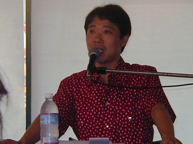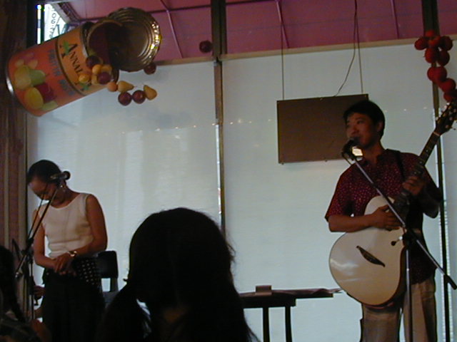 会場である「Cafe Staff」の前にはまだ5〜6人の人しか集まっていない。さすがにこの炎天下で待つ人も少ないんだなと思いながらまだ少し時間があるので近くでお茶することに。朝から何にも食べてなかったけどもう胃はきりきり、緊張モード。ああ、また食べれないんだろうなぁ。エッグタルトと冷たいもので胃をごまかして整理番号の早い私は一足先に会場へ。さすがに開場5分前ともなるとみんな集まってきている。あー、嬉しいなぁ。「久しぶりー」なんて言ってる間に開場の時間になる。今回は席は決まってないようなのでころちゃんたちの席も取ってなんとかひと段落。一人で待ってるとまた緊張してくるのであっちこっちへ行ってしゃべって緊張をほぐす。ころちゃんたちも到着し、席に着く。あれーさっきもらったドリンクのチケットがどっかいっちゃった。お財布どこに入れたっけ?もう毎度のことながら舞い上がっちゃって何やってるんだろ。あー、やんなっちゃう。