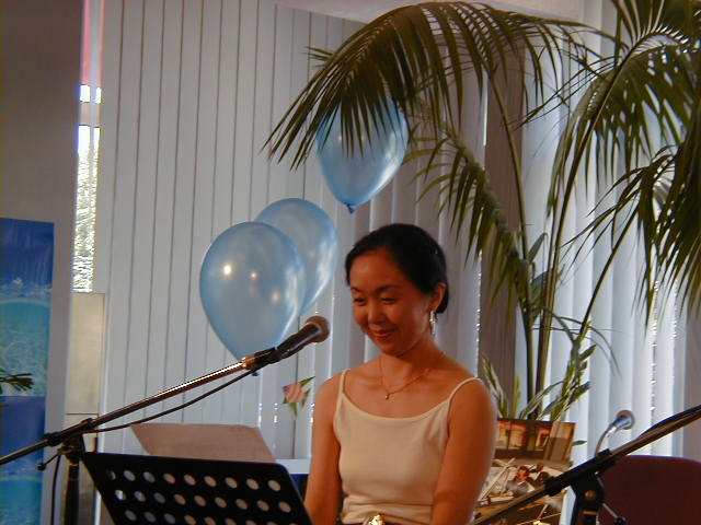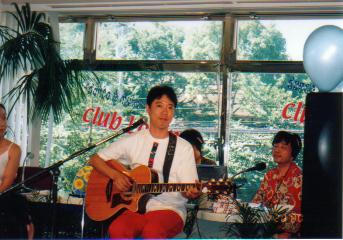 15:05、いよいよライブ。「じゃ、まず1曲かましましょう」と言って「夢みる渚」はぁ〜っこんな曲やってくれちゃうなんて、うれしいなぁ。思い入れがある分どうしてもはまってしまう。薫ちゃんのコーラスも涼やかな風のようで気持ちがいい。「今日はこの愛媛サミットにやってきました、大統領のクリキントンです。」なんて最初っから飛ばしまくり(笑)「薫ちゃんは『おどさん』(お土産)ってよく出て来ますけど」「よくじゃないもんーっ」ってこの前のNHK-FMの件ですね(笑)「ラジオの放送で言っちゃうとこが価値があると思うんです。」「姉に言ったら私だったら寝こんじゃうって言われて、そんな恥ずかしいこと言っちゃったと思ってこれでも結構落ち込んでるんですーっ」って気にしてる様子。(それなのにそれをネタにして『須藤薫クイズ』なんてやっちゃう意地悪な人たち)「梅雨もあけましたけど雨が上がって日が差してそこに出るのは…」「Beautiful〜な虹ですね〜」と「Over the rainbow」を。急遽やることになったらしくなんだかうれしいな。薫ちゃんも気持ちよさそう。ちょっぴり照れくさそうな感じだったけどとっても素敵でしたぁ。間髪入れずに「I wish」この曲をギター1本でやっちゃうとは…なんだか余りにもダイレクトに心の中に飛びこんできて戸惑ってしまう。はぁ〜っ。「前回はクリスマスパーティみたいで今回は夏のクラブって感じで飾り立てて(笑)いただいてホームパーティで歌わせていただいてるって感じなのは私だけ?」「そんなことないですよ」ってすかさず杉さんも助け船。「スポンサーがサントリーって事で僕が歌ってるんじゃないんですけど…」「あっ!!やって!!」と、薫ちゃん。いやぁ〜ん、もしかして、もしかして…♪ウイスキーがお好きでしょ〜♪って「ウイスキーがお好きでしょ」(BY SAYURI)きゃー、嬉しいっ!!間に薫ちゃんが「そうね」とか「そうでしょ」って入れるのがすごーく色っぽくて素敵でしたぁ(*^^*)続いて♪夕焼け〜レッド〜で〜♪「夕焼けレッドで帰りましょう」(BY キングストーンズ)はぁ〜もう満足、満足。あーこんな曲まで聴けるとは…嬉し過ぎて固まってしまう。そして追い討ちをかけるように「お聞きローズマリー」を。ギター1本で聴くとホントにホントにどすんと心に響いて硬直状態。隣で同じように固まってい